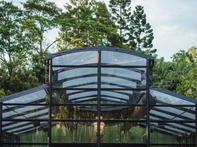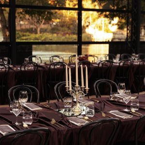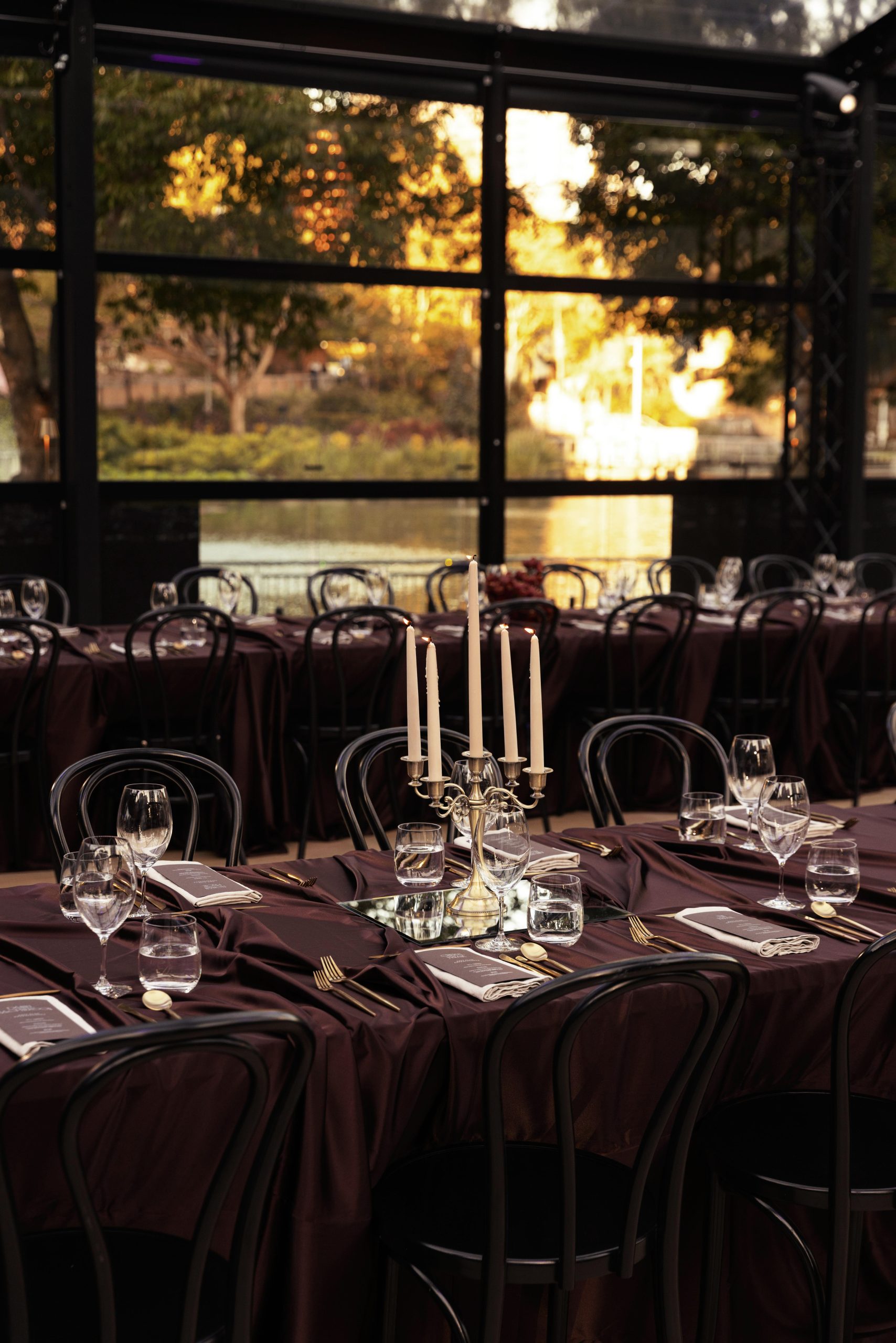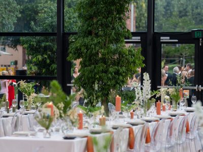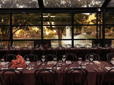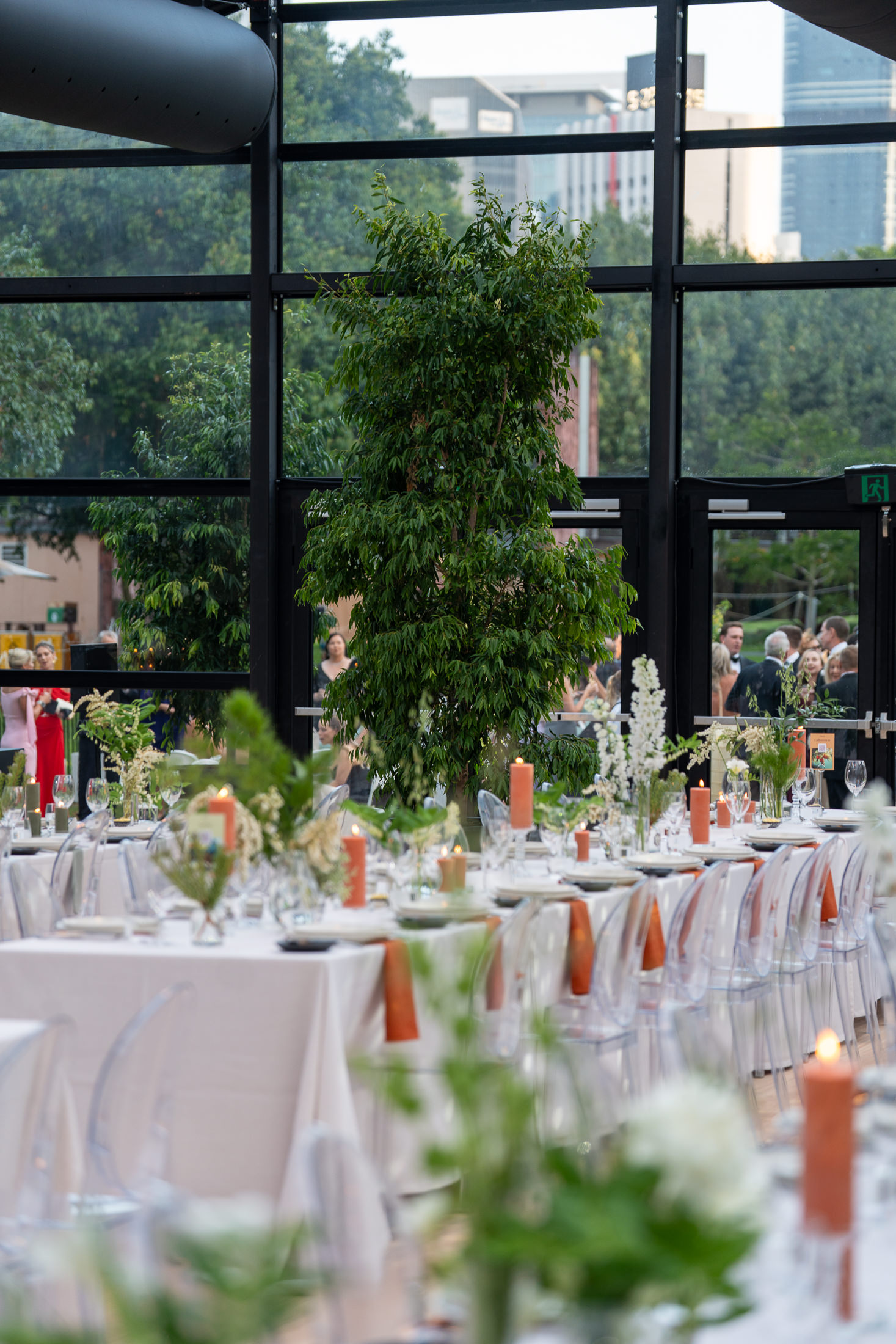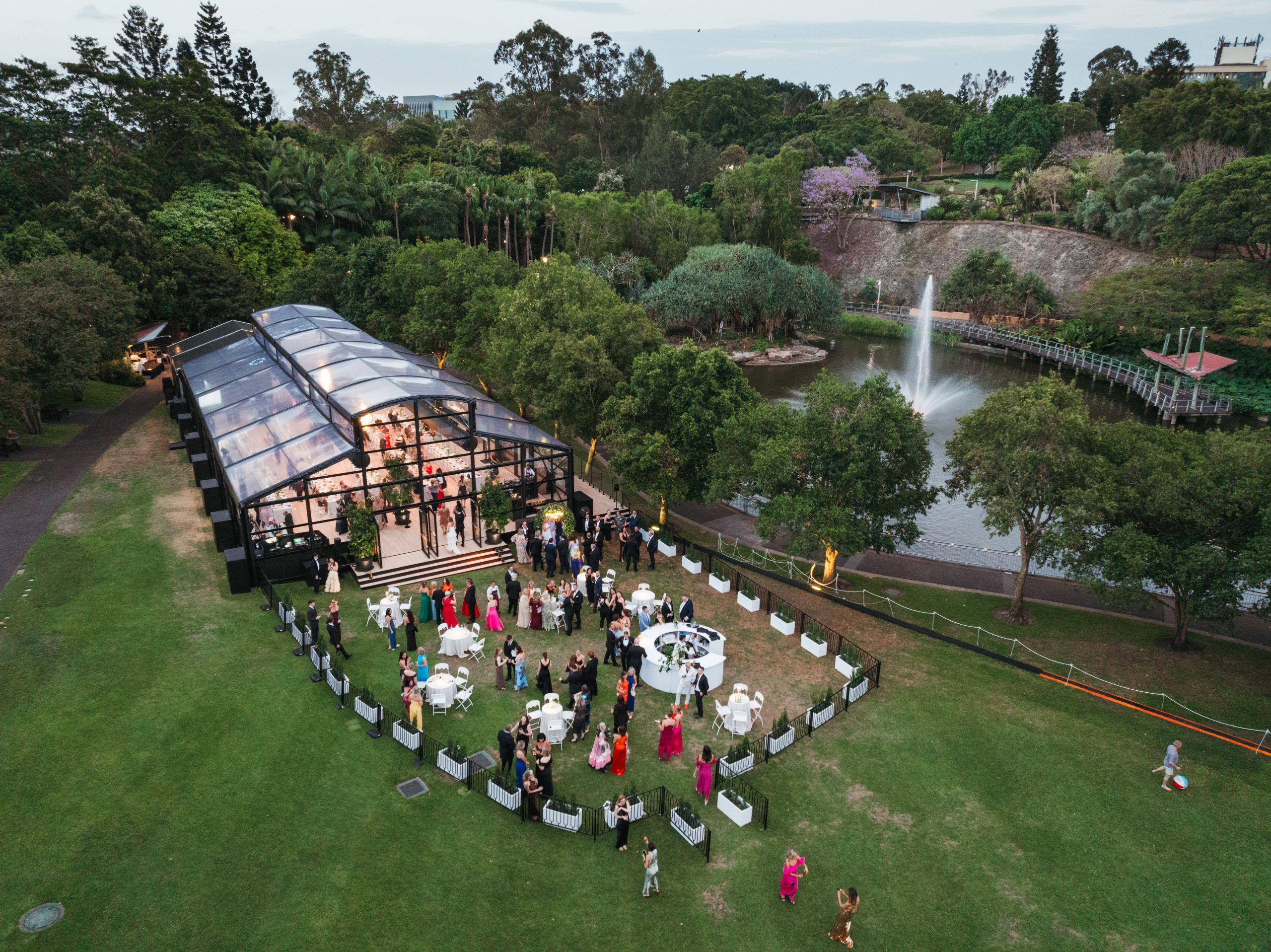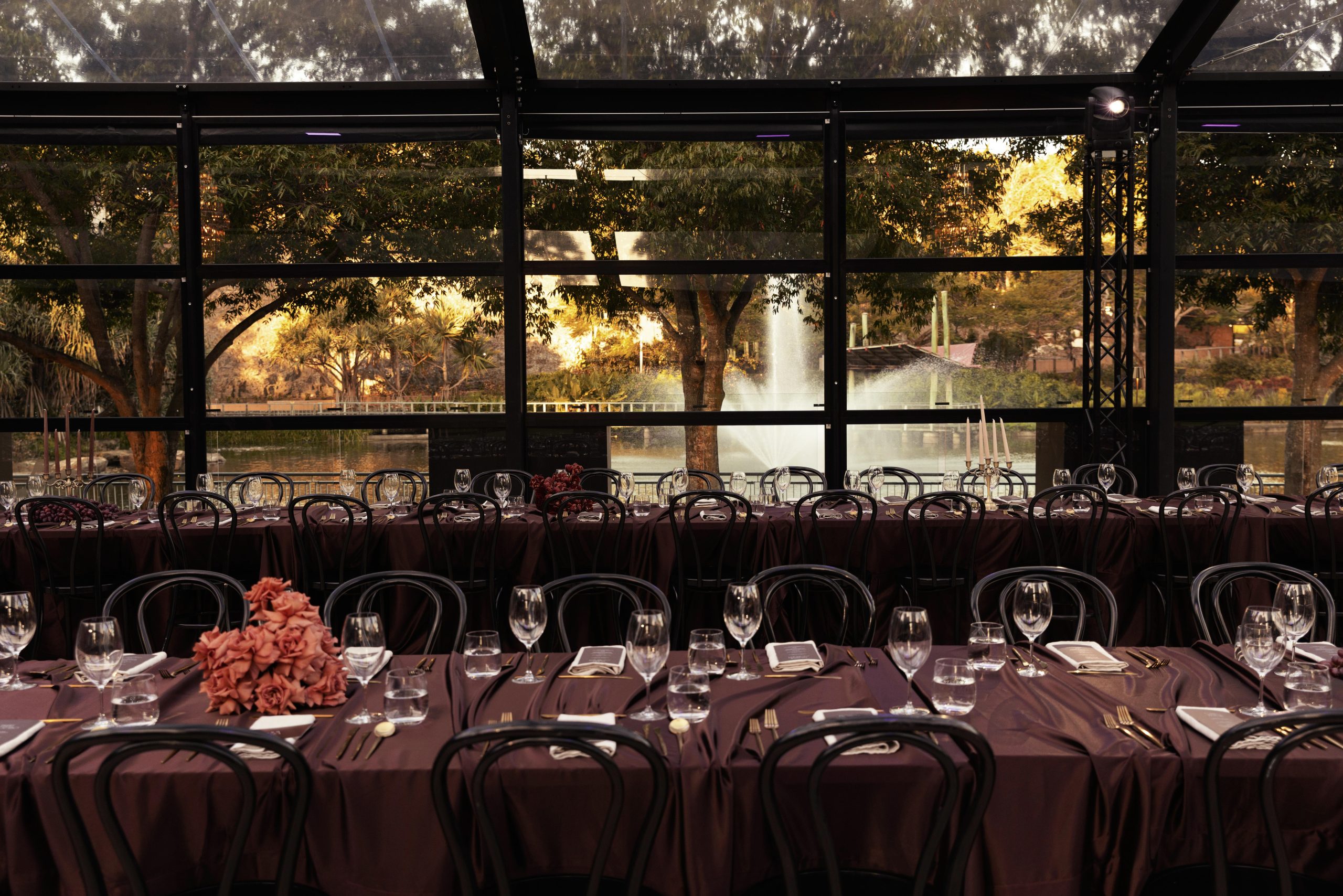 Corporate events at Glo House feel immersive and design-led, set within a striking glass pavilion that blends natural surroundings with high-end production, creating an engaging and memorable atmosphere.