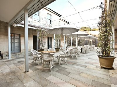 The atmospheric Sandstone Courtyard makes a wonderful outdoor dining space under the canopy of twinkling fairy lights and the star-filled night sky.