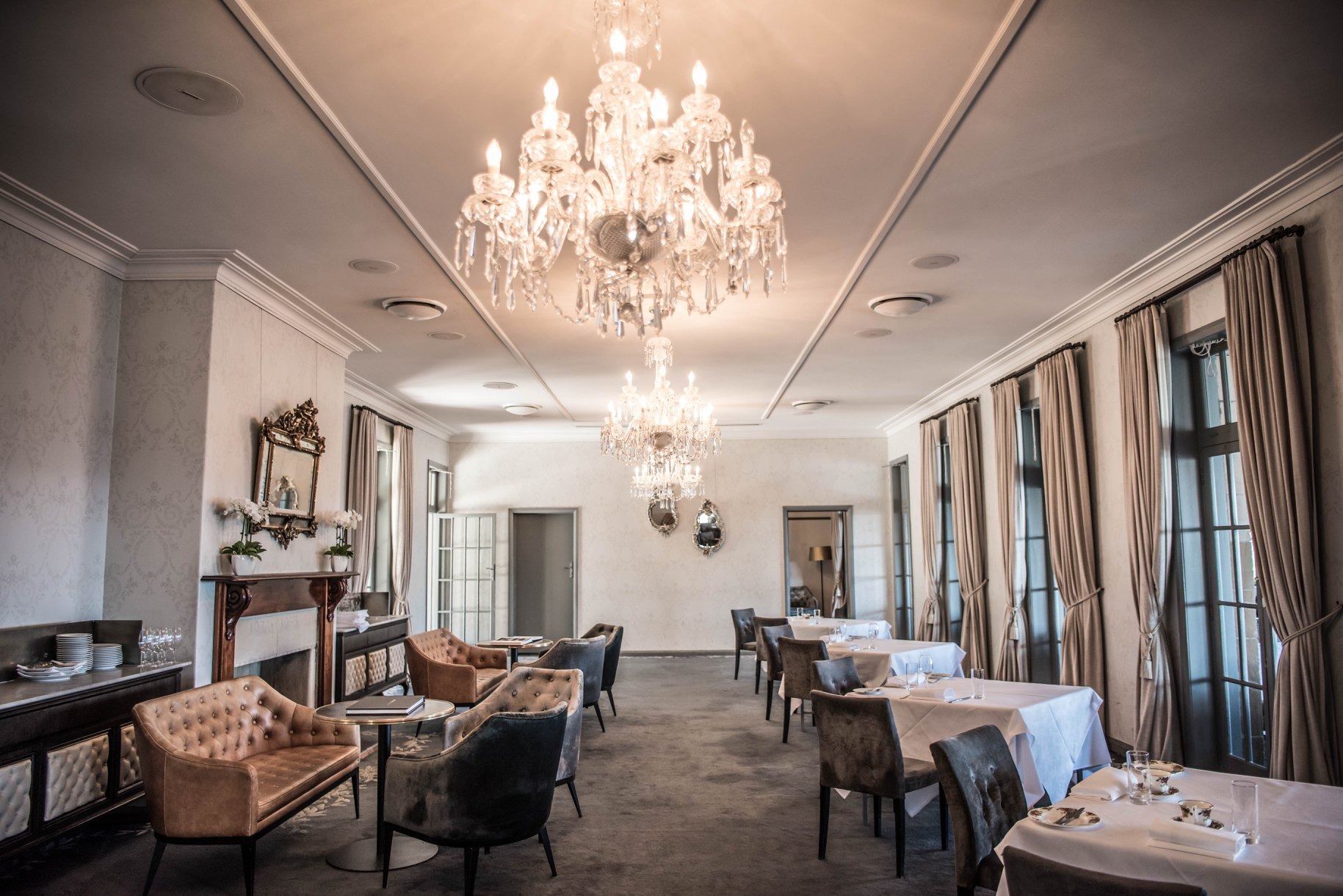 Combining old with the new, this beautifully restored room is steeped in history and features custom-designed wallpaper and opulent crystal chandeliers.