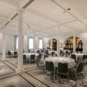 Renowned for its spectacular golden atrium and private Macquarie St entrance, the Hermitage Room is well-lit and features high ceilings, regal pillars, and opulent furnishings.