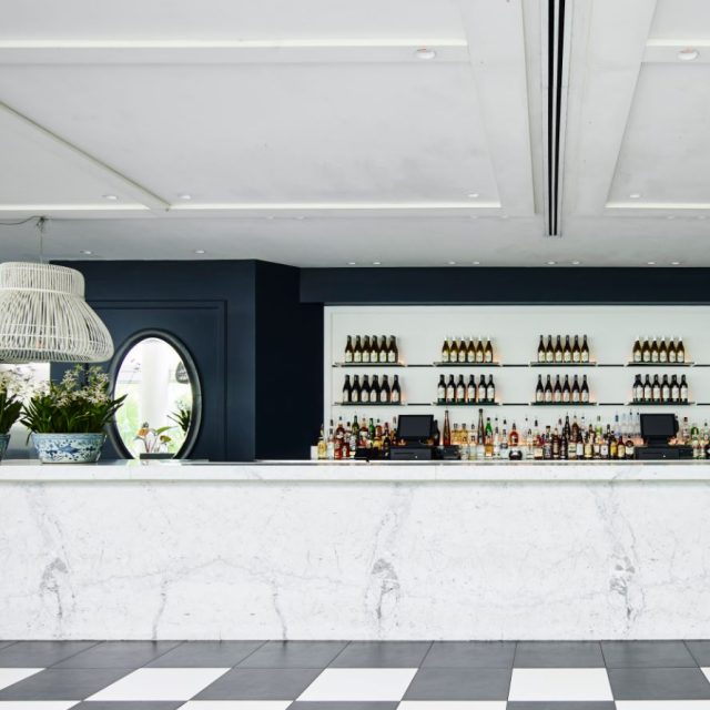 On level 3 of the iconic ivy Precinct on Sydney’s George Street, ivy Sunroom by Merivale is a contemporary event venue that brings a touch of coastal chic to the heart of the CBD. Thanks to large floor-to-ceiling windows overlooking an outdoor terrace, this is a space that’s flooded with natural light, enhancing the fresh white room that boasts deep blue and marble accents, as well as greenery.