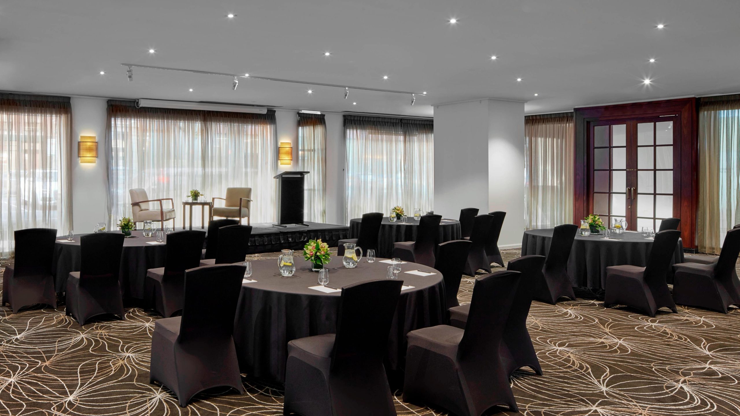 The hotel’s largest event space, suited to conferences, presentations, and large gatherings, with natural light and flexible layouts to support different formats.