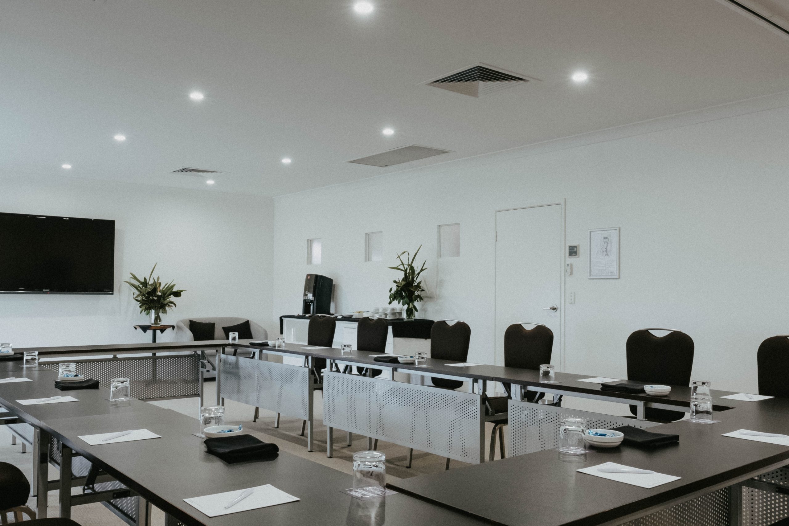 Room hire is available from 8:00am to 5:00pm, offering comfortable, natural- light‐filled spaces ideal for smaller group discussions, workshops, or strategy sessions throughout the day. Breakout rooms can be arranged in configurations ranging from collaborative seating to structured layouts to best suit your program.
