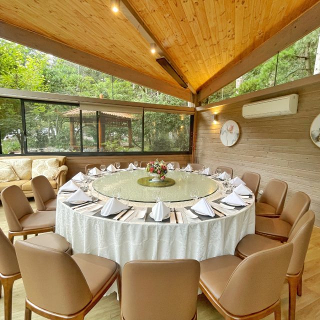 Accommodating 10 to 16 people, these private gazebos are elegant, tranquil spaces for intimate dinners and functions.