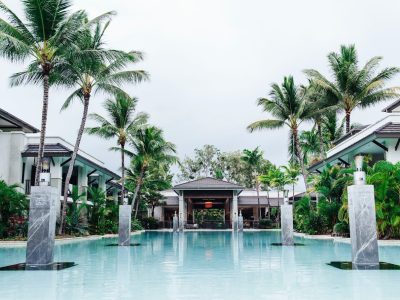 - A luxury resort on Four Mile Beach, surrounded by tropical palms and spectacular coastal scenery