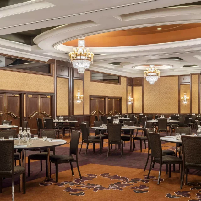 This is an opulent ballroom space with stunning timber panelling and crystal chandeliers. As the largest banquet venue on-site, it can comfortably accommodate up to 360 guests in a theatre-style setting. The room can also be partitioned into three distinctive spaces, Clarendon A, B and C. This offers organisers loads of flexibility for event setup.