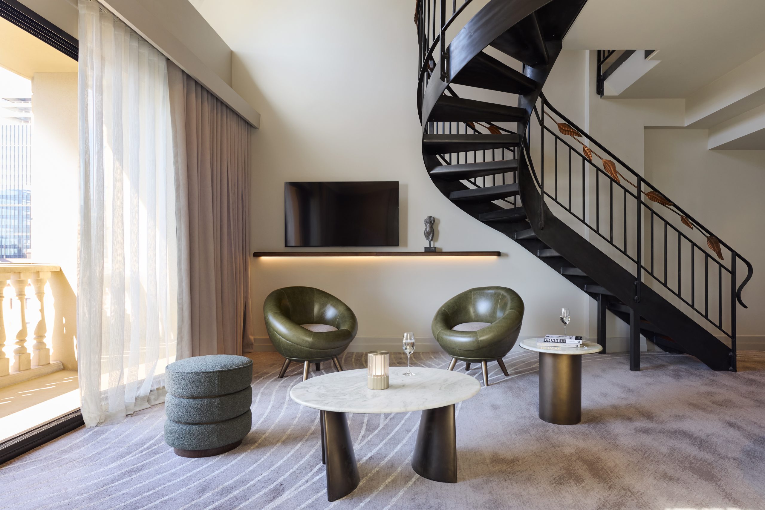 A versatile space perfect for both intimate gatherings and larger events, featuring abundant natural light and sophisticated Art Nouveau design.