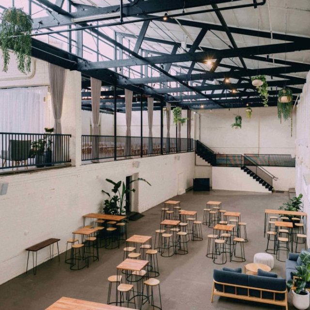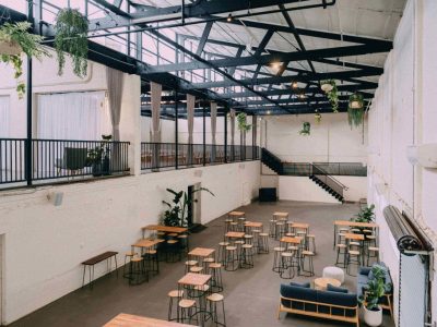 Located down one of Melbourne’s signature brick-lined laneways, the Wool Mill is a hidden gem in the trendy suburb of Brunswick East, an inner north suburb just minutes from the CBD. Festoon lights guide you towards the venue’s nondescript entrance, belying the chic blank canvas warehouse space you’ll find beyond.