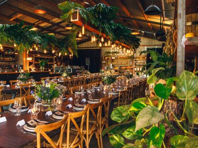 The Restaurant at Three Blue Ducks Byron Bay exudes rustic charm, ideal for hosting intimate gatherings or large events, with its warm ambience and picturesque farm surroundings.