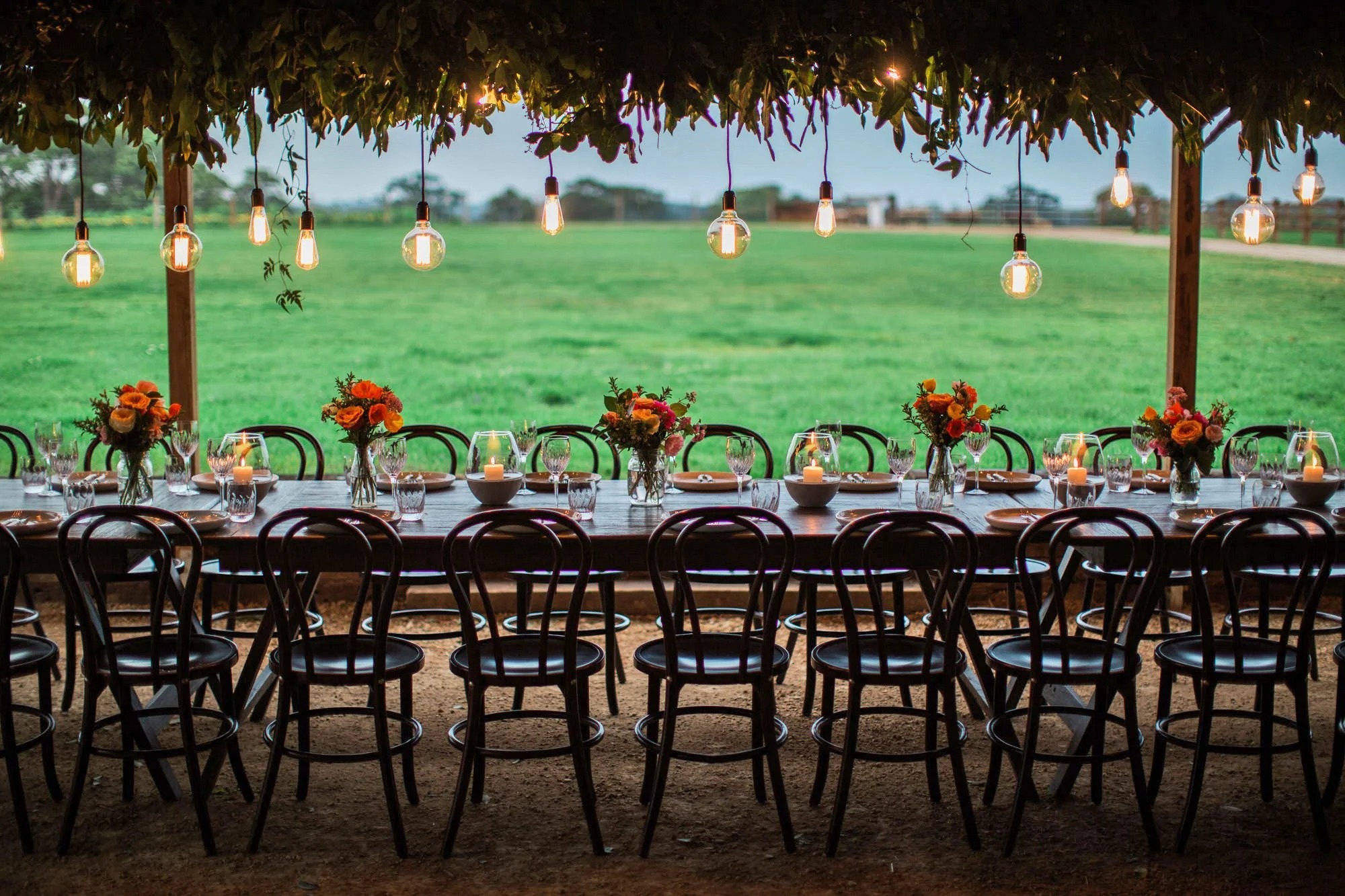 Ideal for smaller groups, The Front Deck provides a casual setting surrounded by a floristry and organic nursery, offering breathtaking sunset views of The Farm and the hinterland.