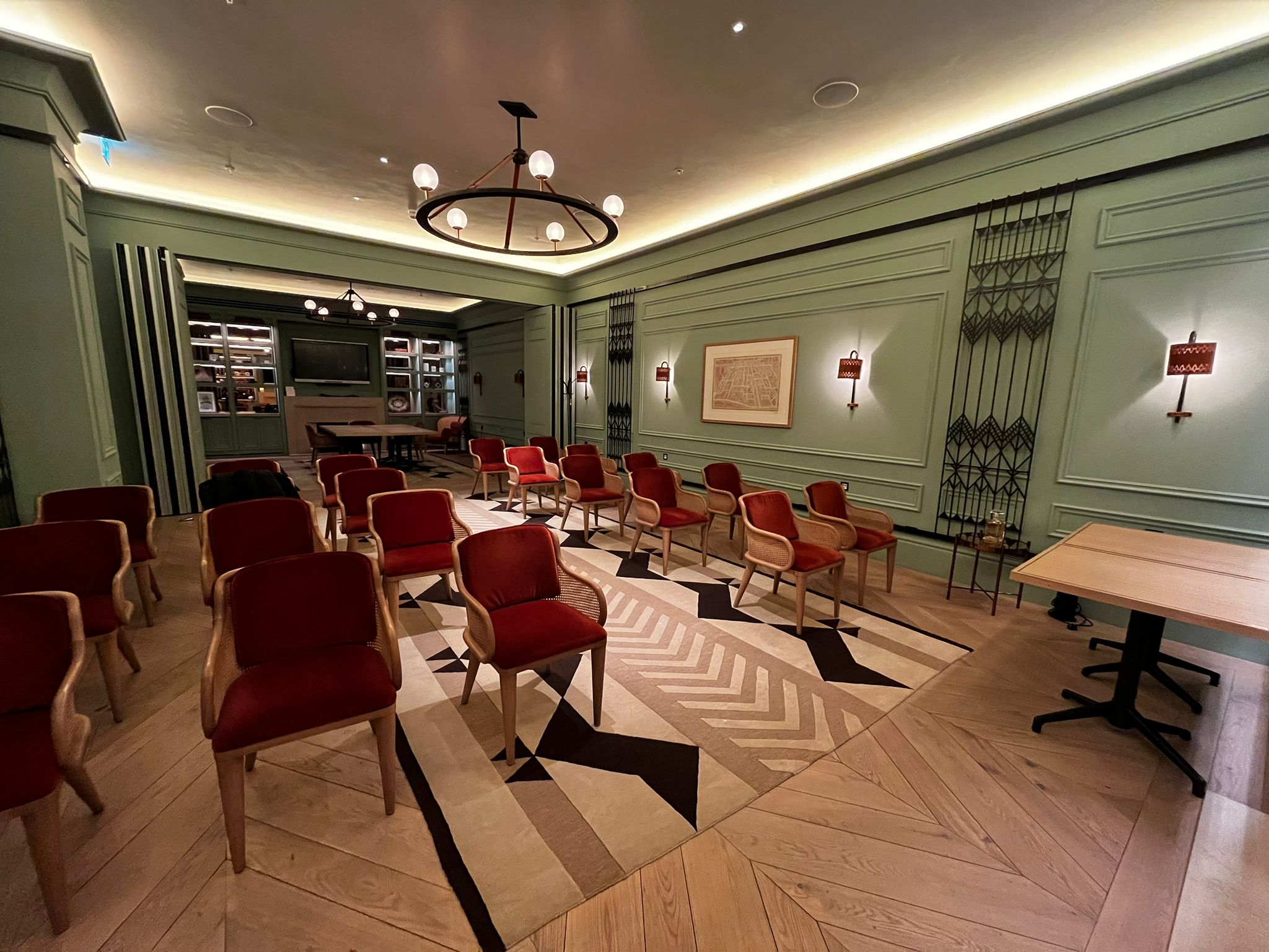 Host up to 26 guests standing or 10 boardroom-style in a space where history meets modern charm. With high ceilings, a relaxed yet refined vibe, and top-notch AV tech, it’s perfect for big ideas—or a good old chinwag! Wrapped in soothing sage green, the room nods to East London’s silk-weaving past. Holds the option to extend to the Tenon Suite.