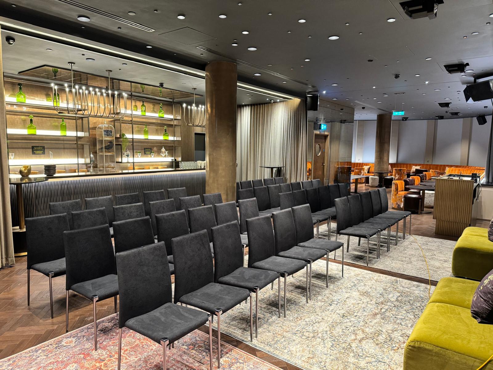 A combination of the above two suites. Host up to 68 guests in this spacious 80-square-meter room with high ceilings, offering a laid-back yet elegant vibe. Perfect for lively discussions or a good old chinwag, the space is equipped with cutting-edge audio and video technology to ensure your event runs seamlessly and keeps your guests engaged.